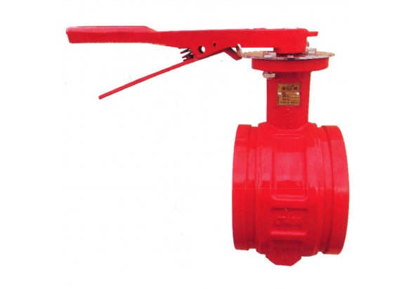 手柄沟槽蝶阀结构简单, 性能优良, 使用广泛。 主要用于截断阀使用, 该产品可安装在石油、 化工、 食品、 医药、 轻纺、 造纸、 水电、船舶、 城市给排水、 冶炼、 能源等系统中一切腐蚀性、 非腐蚀性的气体、 液体、 半流体、 以及固体粉末管线和容器上作为调节和截流装置使用。